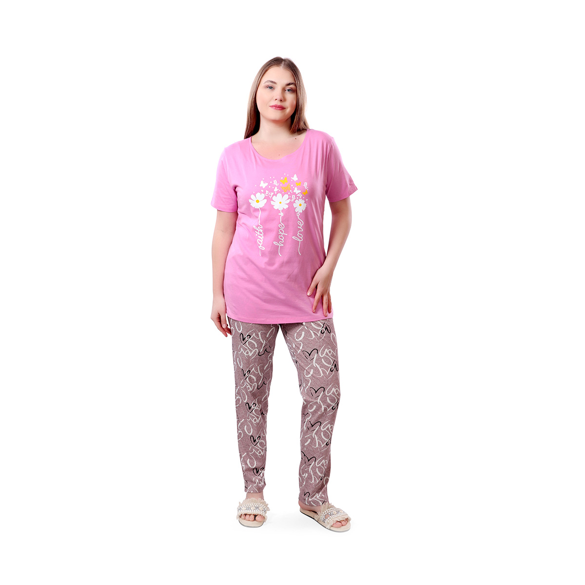 طقم حريمى توب ساده بطبعه بنطلون مطبوع